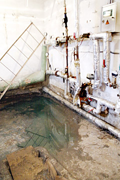 Šiluminio punkto patalpoje tvyrojo kanalizacijos tvaikas, o didžioji dalis grindų buvo apsemta fekalijomis bei žaliai nudažytu termofikaciniu vandeniu. „Šiaulių energijos“ darbuotojas aiškino, jog taip yra dėl užsikimšusios namo kanalizacijos.