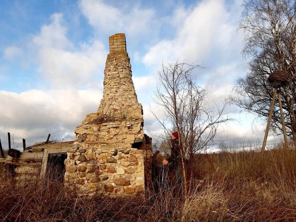 Išėjus į pamiškę toliau eiti vilioja tolumoje stūksantis keistas siluetas. Einant artyn, pasitvirtina spėlionė, kad už akies užkliuvo archajiškas gryčios kaminas. Kertam Aukštąją Gervę ir jau einam BRIGIŠKIŲ ulyčia. Vienoj pusėj – gryčios kaminas ir jau gandrų nebelankomas gandralizdis. O tolyn, link Medeikių, tikriausiai ir driekiasi Medeikių laukas, kuriame įvyko pirmasis didžiulis 1863 m. sukilimo mūšis mūsų kraštuose.