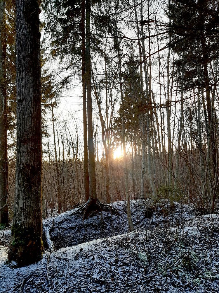 Kurlink nubėgo elniai, į mišką lendam ir mes... kur jų pėdsakai – pirmasis bunkeris... antras, trečias, ketvirtas... penktas – nedidelis, sako, jame buvo įsikūrusi partizanų grupelė iš Latvijos... Saulė į mus žiūri pro medžių šakas...