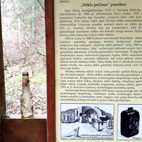 Gruodžio 14 d. Stiklo pečius... nuo vasario pabaigos 28 savaitgalinės kelionės pėstute iš žemėlapių išbrauktomis (arba išbrauksimomis) vietomis, kur gyventa, mylėta, džiaugtasi, kentėta... kur laikas neatpažįstamai pakeitė kraštovaizdį ir užmaršties smėliu užpustė žmonių gyvenimus. Šiandien darsyk Biržų girioje – nuo Lujėnų iki Stiklo pečiaus, t.y., vietos, kur būta kunigaikščių Radvilų stiklo manufaktūros. Prie vienos sodybos automobilį pametė vienas medžiotojų, jų pilnas miškas... kažkada Biržų girioje gyveno Briedžiai, Šernai... šiandien po girią vaikšto tie, kurie briedžius ir šernus medžioja... Apmaudu, bet net vieninteliame išlikusiame 1645 m. Biržų kunigaikštystės žemėlapyje, kur pažymėti visi svarbūs ūkiniai objektai, žemėlapio vieta, turėjusi žymėti stiklo manufaktūrą, sunykusi, nežinoma, kaip buvo šiame kartografijos unikume įvardinta. Biržų urėdijos dėka ši vieta nėra nebyli: sekdamas sustatytas rodykles, nesunkiai šią paslaptingą vietą gali atrasti, o trumpą jos istoriją pasakoja jau buvusio „stiklo pečiaus“ vietoje pastatytas informacinis stendas. Virstančių eglių šaknys iškelia čia buvusios stiklo manufaktūros likučius. Paėjėję takeliu toliau aptinkame ir pamatų akmenis ir daugybė duobių... nejaugi nuo to laiko, kai stiklui buvo kasamas kvarcinis smėlis?.. Randame ir stiklo, deja, ne to, ne XVII amžiaus...