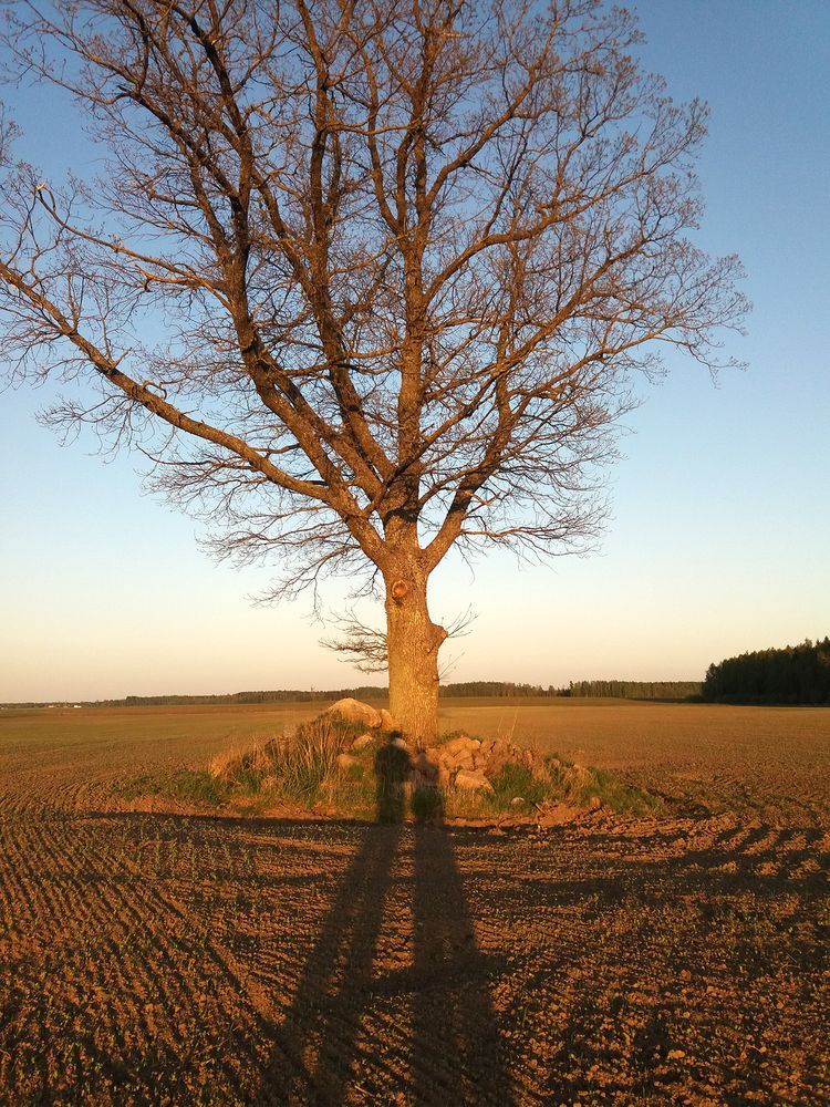 04.28 Vejamės besileidžiančią saulę vis dar menkai sužaliavusiais laukais paskutinį balandžio sekmadienį... PAKAUŠINĖ, SVIRPLIŠKIS, SLIŽIAI, AŽUBALIS, OSENIŠKIS, GIDIŠKIS, PUKNIŠKIS... Pliki laukai, vienas kryžius ir vienas ąžuolas... dar stepė... po kelionės liko neužrašyti įspūdžiai, tad juos tenka po metų atgaivinti. Nuo buvusio Svirplišio palivarko kalno buvo galima užmatyti apšviestus Papilio bažnyčios bokštus, vakaro saulė glostė ir sankryžoje stovintį, ūkininko J. Užkurėlio pastatytą, kryžių, ir piešė ilgus buvusios Sližių ulyčios šešėlius. Grįžę prie Svirpliškio kalno leidomės tolyn plačiais laukais, bandydami atpažinti, kurį viensėdį žymi viena ar kita kalva: Ažubalis, Oseniškis, Gidiškis, Pukniškis... Ne kartą kirtome upelę nepaprastai gražiu pavadinimu – Lakštalaža, ir įmynėm didžiulius pėdsakus smėlyje, išpieštame gervių pėdučių ornamentais. Ir supainiojome kalvas, ir Kalninių sodybos ąžuolą Pukniškyje „atidavėm“ Gidiškiui (ačiū Algirdui už klaidos atitaisymą), ir palydėjom saulę didžiulėje smėlio stepėje, vos už keleto kilometrų nuo Papilio...
