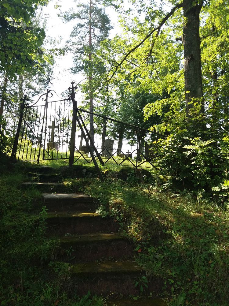 Liepos 28 d. Vidurvasarį, kada laukuose pakvimpa šiųmete duona, o vasaros karštis pasiekia apogėjų, klajoti miškais, o juolab pamiškėmis, didžiulis iššūkis: debesys įkyriai zvimbiančių ir dargi skaudžiai geliančių vabzdžių nugula visą kūną nors akimirkai sustojus, ieško nepridengtų vietų ir suleidžia savo geluonis lyg adatas... bet... bijai vilko – neik į mišką, o mes šįkart pasirinkom mišką, kur net ir mešką gali sutikti. Bet kelio pradžia – MILIŪNAI, kaimas, buvęs kaimas... šiandien nė vieno kiemo, nė vienos sodybos, tik buvusią „ulyčią“ rėminanti medžių alėja, kuria leidžiamės. Ir visai netikėta – pro medžius ant kalnelio pasimato kapinių kryžiai, o priėjus arčiau atsivėręs vaizdas prikausto... į Vėlių kalnelį veriasi įspūdingi varteliai, padabinti grakščia saulute. Kapinaitės ant kalno. Keisčiausia, kad internetinėj erdvėje neminima Miliūnuose buvus kapelių, o knygoje apie Suvainiškį aprašytos Melninkų kapinaitės ant kalnelio, atrodo, ir bus šitos pačios – kalnelis, kur aplink randama žmonių kaulų ir pinigėlių su vyčiu...