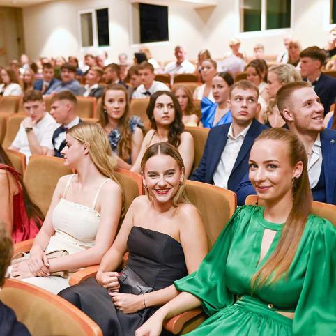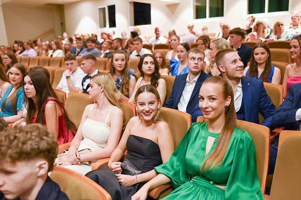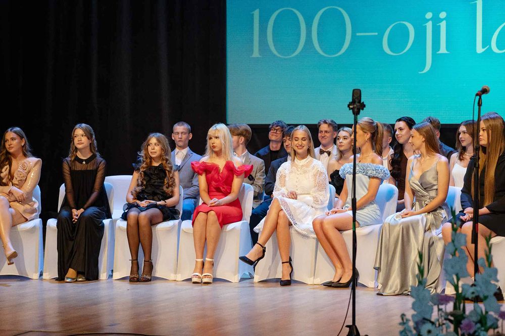 Vakar Biržų kultūros centro salė buvo sausakimša pasipuošusių jaunų žmonių – vyko Biržų „Saulės“ gimnazijos 100-osios abiturientų laidos brandos atestatų įteikimo šventė.
