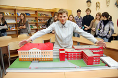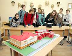 „Darbo ėmiausi pernai, pasibaigus mokslo metams. Maketui daryti pirmiausiai reikėjo statinių projekto. O jo nebuvo nei mokykloje, nepavyko rasti ir Vilniuje, — pasakojo M. Nevulis. — Teko imti ruletę, bloknotą, fotoaparatą ir, susiradus vieną kitą patalpų planą, imtis pastatų matavimų“.