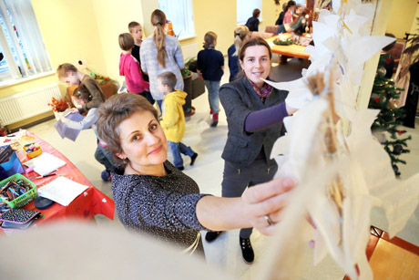 ANGELAI: Maltiečių dienos centro socialinė pedagogė Vilma Kaušienė (kairėje) ir pedagogė Onutė Krušinskė vaikus mokė pasigaminti angelus ir jais pasipuošti patalpas prieš Kalėdas.