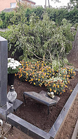 Anot vilnietės, kapavietės iš po užverstų šakų ir medžių lapų buvo išlindęs vos nedidelis plotelis. Šakos buvo užgulusios ir kapo gėles. Priėjimą prie kapavietės atitvėrė takelyje surikiuoti medžių kelmai.