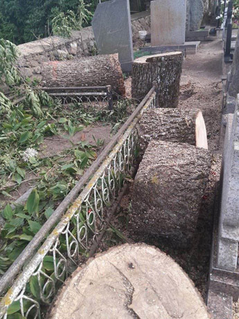 Pašnekovės žiniomis, medis kapinėse buvo nupjautas išvakarėse.