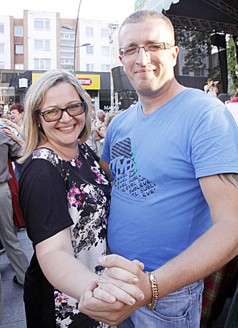 DALYVIAI: Iš Šakių rajono su Liepalotų kaimo kapela atvykę muzikantai Lina Bataitienė ir Tomas Skaisgirys pirma atgrojo patys, o po to klausėsi kitų kapelų ir šoko. „Pažiūrėkite, kiek žmonių, ir visi linksmi, šoka, girtų nematyti!“ – džiaugėsi pora festivaliu.