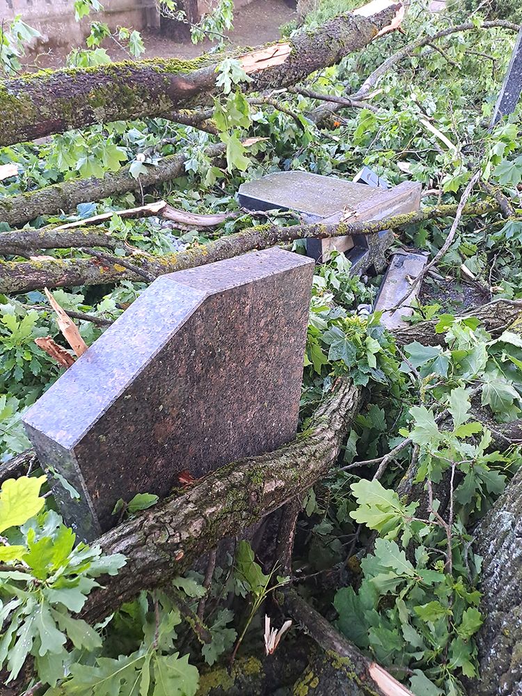 „Liepų gatvėje, prie kapinių nuvirto klevas, kuris apgadino dvi kapavietes. Su vienais žmonėmis, prižiūrinčiais kapavietę pavyko susisiekti, kitos kapavietės prižiūrėtojų ar giminių dar ieškome. Smėlio gatvėje buvo išverstos penkios eglės. Viena nulaužta, o kitos išvirtusios su šaknimis. Matyt viesulas prasisuko“,- situaciją komentavo K. Undzėnienė.