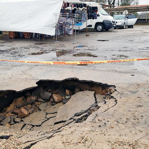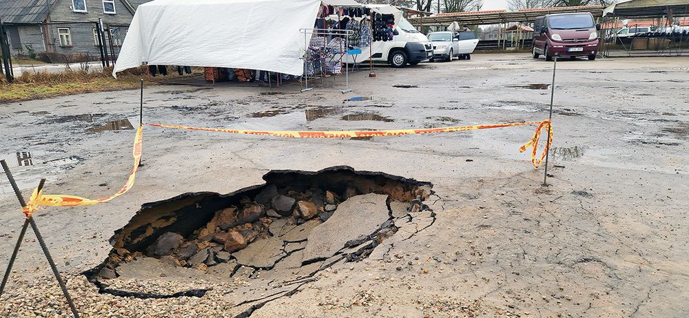 Atėję į turgų prekeiviai, rado atsivėrusią duobę