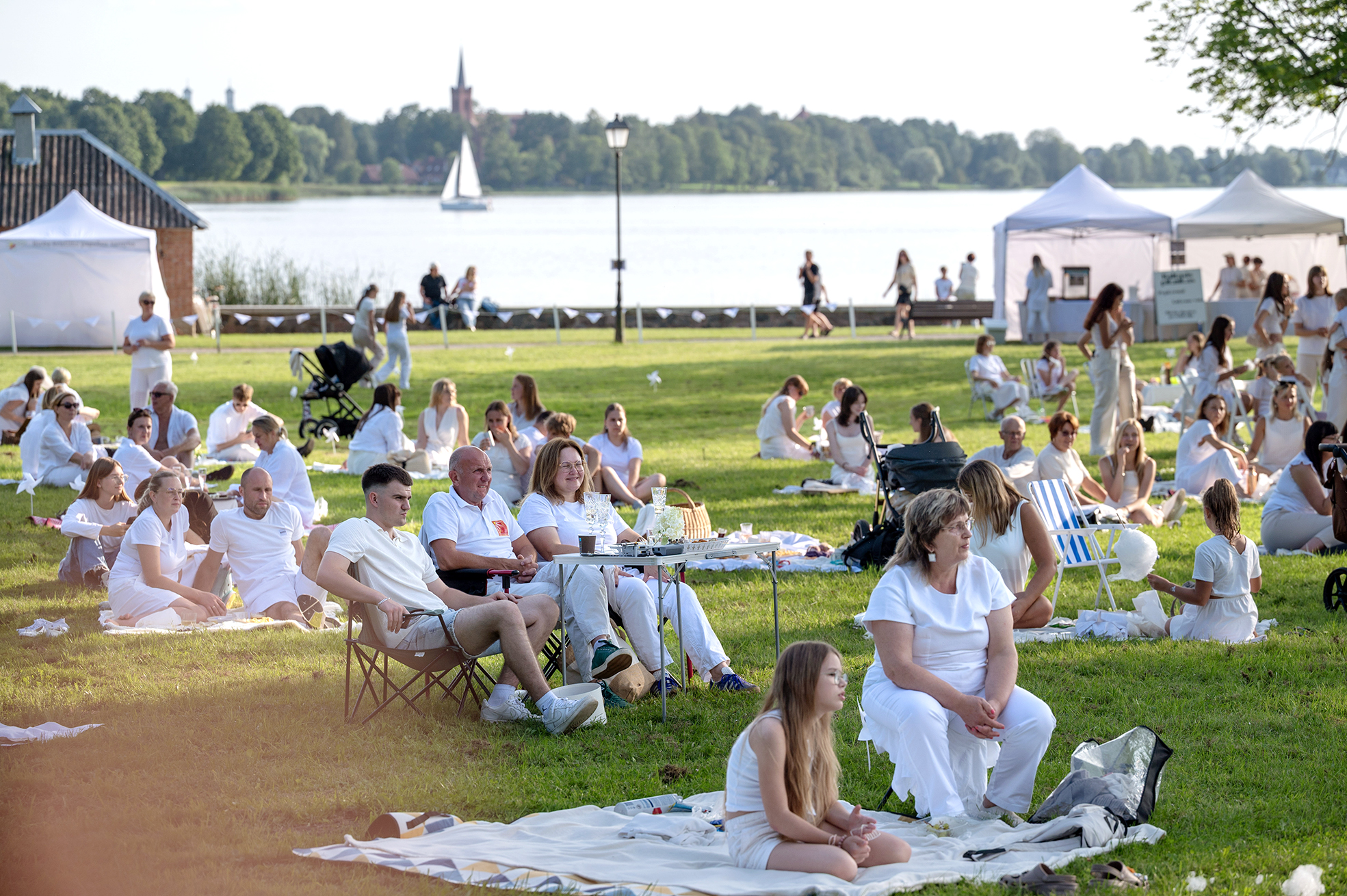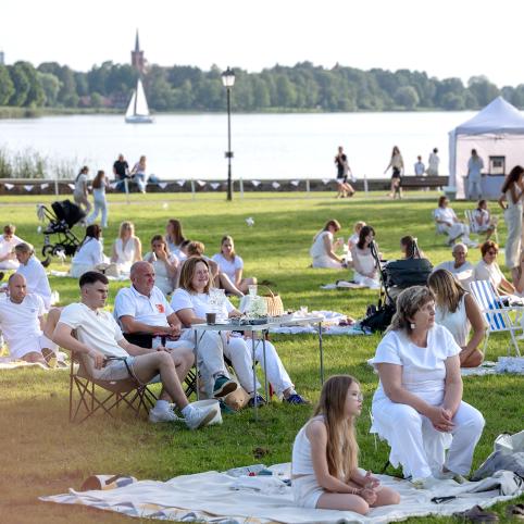 Šiemet, kaip ir pernai, baltoji šventė vyko Grafų Tiškevičių rūmų parke. Būreliai žmonių: kas po vieną, kas su šeima ir draugais, bet visi pasipuošę ir linksmai nusiteikę ruošėsi būsimam piknikui.