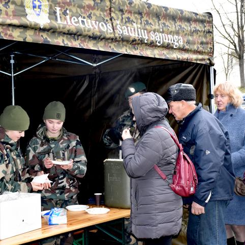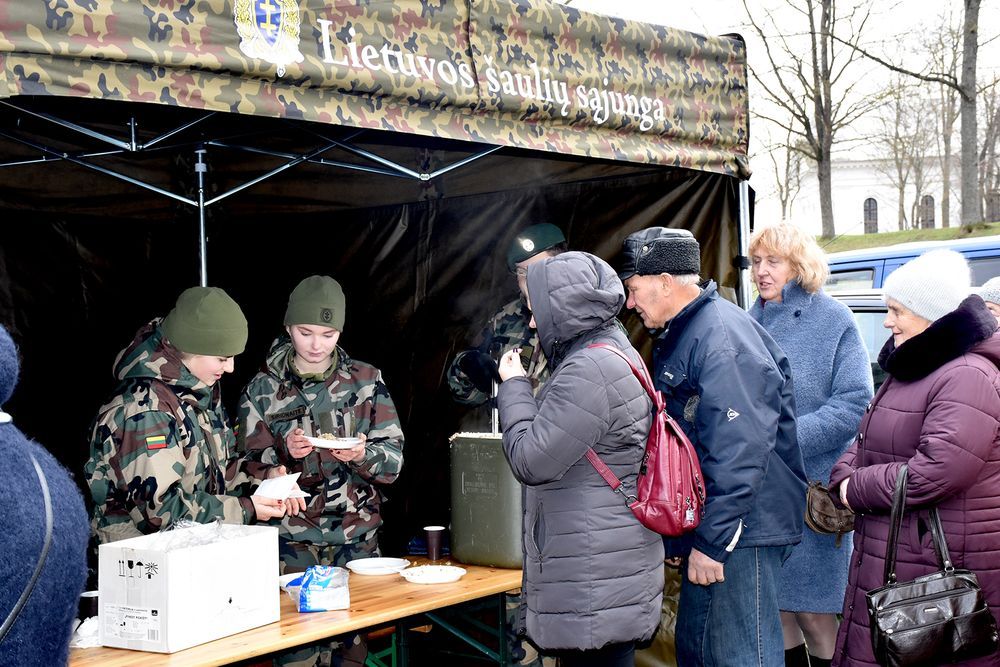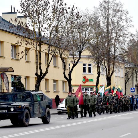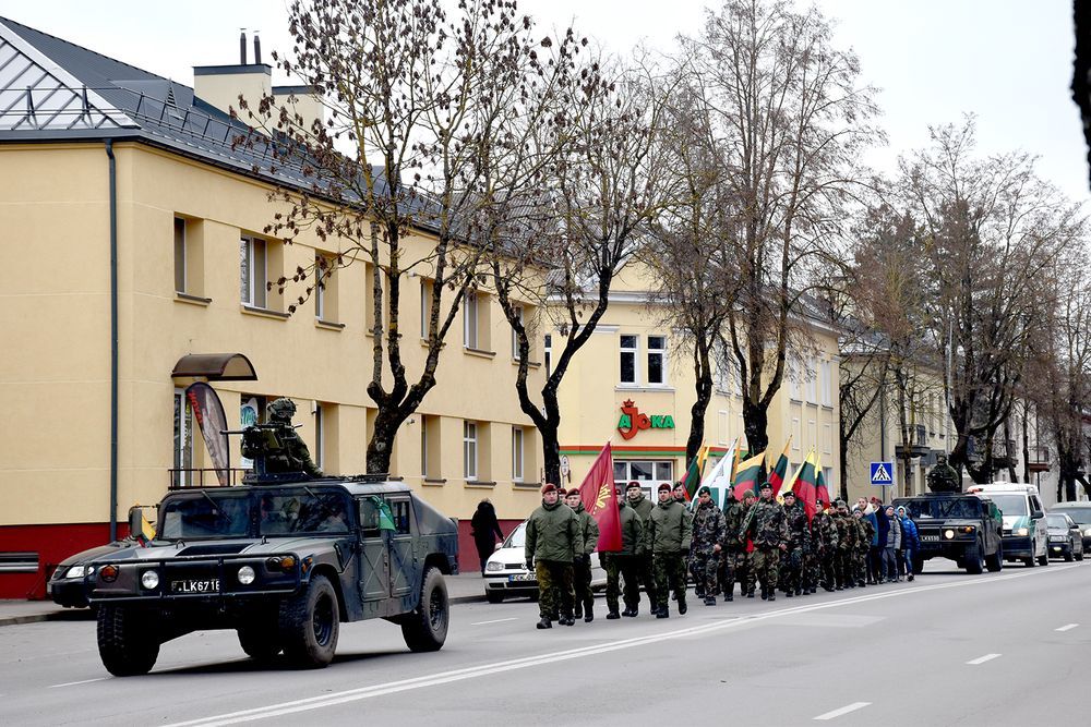 Iš J. Nastopkos gatvės karių kolona žygiavo prie paminklo Žuvusiems už Lietuvos Nepriklausomybę. Čia buvo sugiedota Tautinė giesmė, sveikinimo žodį tarė meras V. Jareckas, Seimo narys A. Šimas. Prie paminklo buvo padėtos gėlės ir uždegtos žvakutės.