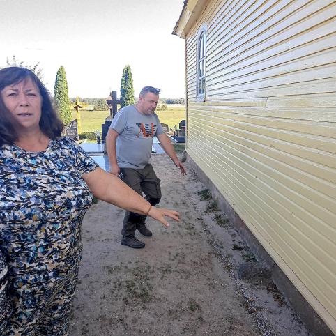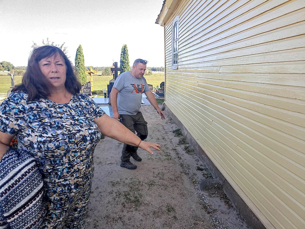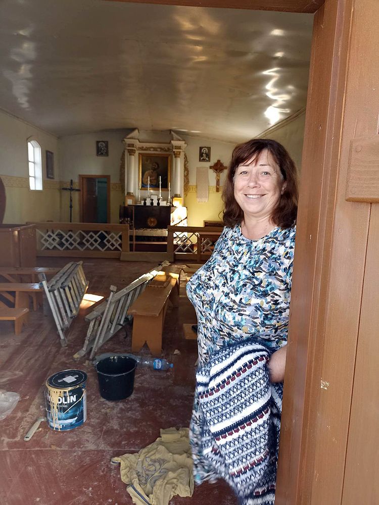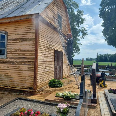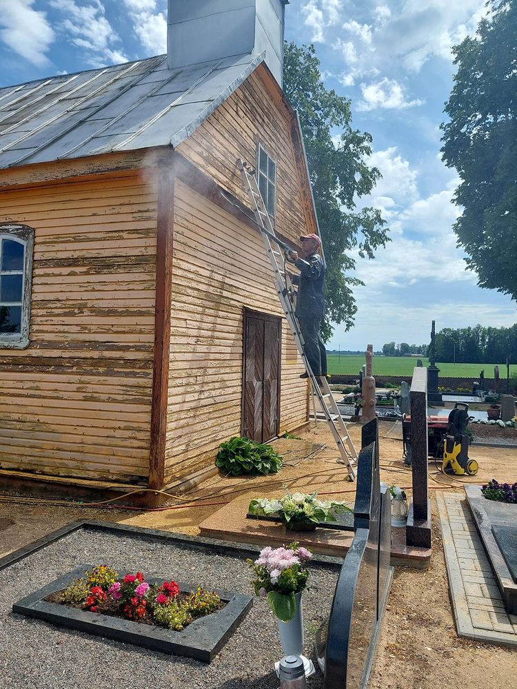 Nuplovus koplyčios sienas, pastebėta nemažai supuvusių lentų, kurias teko keisti naujomis.