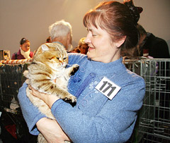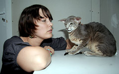 GROŽIS: Vilnietė Vaida į parodą atsivežė Lietuvoje populiarėjančius orientalus — rytietiško grožio katiną Abubį. Draugiški, šuniško charakterio katinai kainuoja 1,5-4 tūkstančius litų.