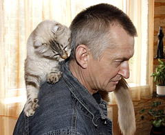 DRAUGYSTĖ: Šiaulietis Bronius Gramavičius pradžioje laikė persų, egzotų veislių katinus. Tačiau šie katinai, palygino jis, yra tingūs ir skirti gulėti ant sofos. Jis įsigijo judrius gyvūnus — Meino meškėnę ir Amerikos riestaausę.