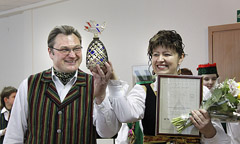 APDOVANOJIMAS: Šiaulių 2-osios muzikos mokyklos mokytojai Lora Andriuškienė ir Darius Daknys džiaugėsi apdovanojimu — jų koletyvas pirmasis iš miesto muzikos mokyklų įvertintas nominacija „Aukso paukštė“.