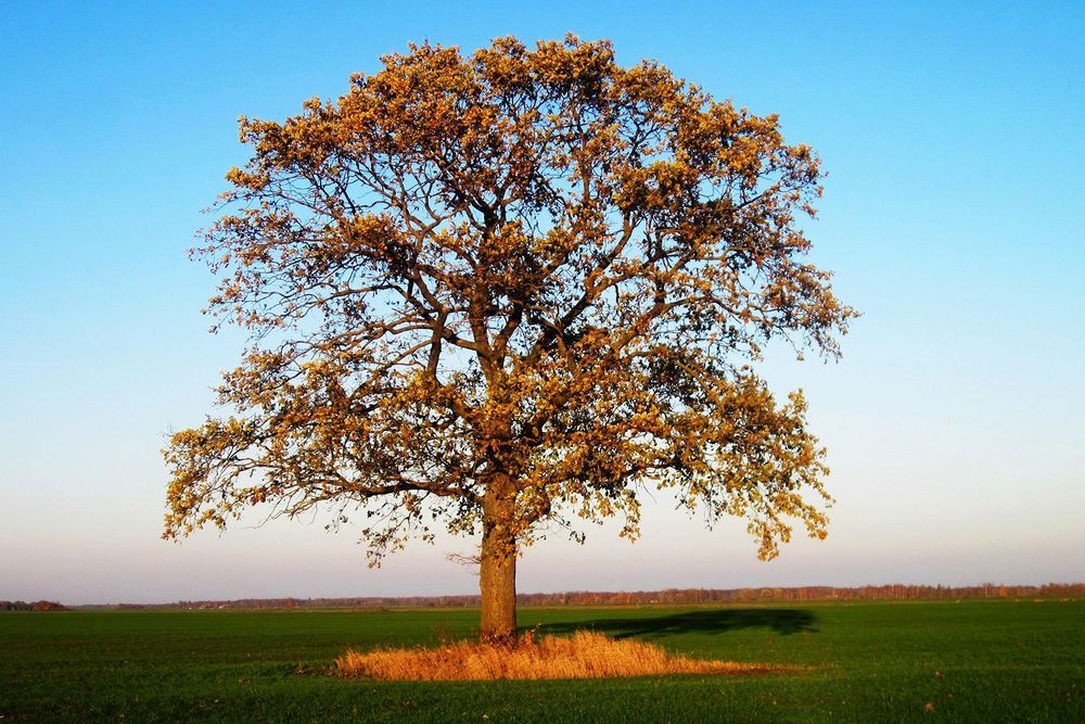 VIE­NI­ŠAS ĄŽUO­LAS: kaž­ka­da au­gęs žmo­nių so­dy­bo­je. Žmo­nės iš­vy­ko. Na­mus nu­grio­vė. Ta­čiau ąžuo­las te­bes­to­vi – ne­pa­ki­lo prieš jį ran­ka su kir­viu.