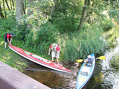 Ties Ginučių kaimu baidares apie 20 metrų tenka persinešti keliu.