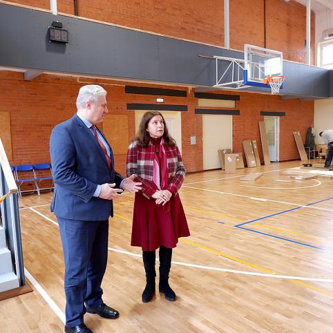 Vasario 17 dieną rajono Savivaldybės meras Vytas Jareckas lankėsi „Aušros“ pagrindinėje mokykloje, domėjosi, kaip vyksta projekto darbai. Apie juos pasakojo direktorė Saulė Venckūnienė. Darbai jau eina į pabaigą. Per mokinių atostogas ir sporto salėje, ir valgykloje dirbo statybininkai, buvo surenkami baldai. Įgyvendinus projektą bus atnaujinta pati sporto salė, paremontuoti persirengimo kambariai, koridorius į salę, įrengti sporto inventoriaus laikymo kambariai, rekonstruotos veidrodžių ir treniruoklių salės, tvarkomos kitos iki šiol nenaudotos, bet reikalingos patalpos. Remontas kiek užsitęsė, todėl mokiniai sportavo ir aktų salėje, ir lauke, ir koridoriuose. Netrukus jie galės naudotis pagrindine ir kitomis kūno kultūrai skirtomis salėmis.