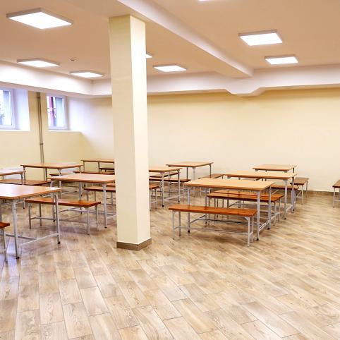 Šviesi ir graži valgyklos salė, moderniai atitverta virtuvės zona, sutvarkytas koridorius į valgyklą. Dalį darbų mokykla atliko savo jėgomis ir lėšomis.