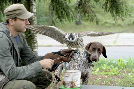 Nors išdykęs šuo per treniruotę ir taikosi čiuptelėti sklendžiantį paukštį, rimtų pykčių komandoje nekyla. „Aš esu bosas, – šypsosi Michal. – Manęs klauso ir paukščiai, ir šuo.“