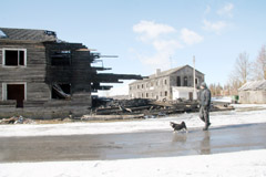 „Ventoje žmonių knibždėte knibždėdavo, o dabar — tušti niekam nereikalingi namai deginami. Bėga žmonės, nes čia nebeišgyvena“, — rodydamas į neseniai degusį daugiabutį medinį namą Ventos upės pakrantėje sako Vladas Dačkauskas, 55— erių Ventos gyventojas.
