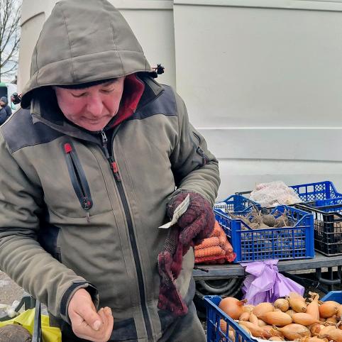 Verslūs turgaus prekiautojai sausį dažniausiai atostogauja. Mat šį mėnesį biržiečiai labiau taupo, mažiau perka – nori atsigauti po didžiųjų švenčių. Bet šeštadienį ūkininkų turguje sutikti biržiečiai juokavo, kad ir po naujųjų valgyti vistiek norisi ir rikiavosi prie daržovėmis prekiavusių ūkininkų.