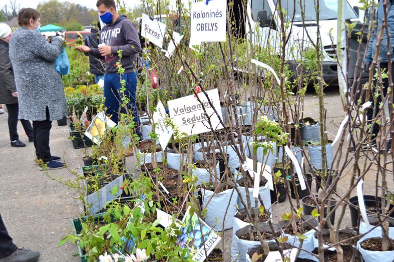 Biržų turguje šeštadienį pirkėjų dėmesio netrūko vaismedžiams. Šį pavasarį jie dėl karantino į turgų vėlavo. Vieni vešliai sulapoję, kitų šakos jau ir žieduotos. Akį pirmiausia traukė Lietuvos medelynų sodinukai. Juos reklamavo “Žagarės sodai” , V. Eidimto privatus medelynas.
