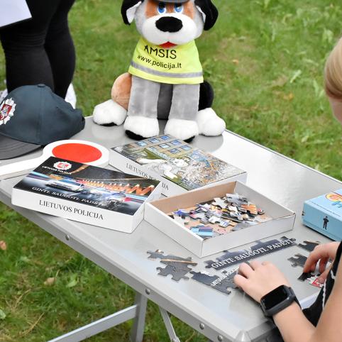 Į šventę atvyko ir policijos atstovai. Kvietė sudėlioti Lietuvos policijos dėlionę ir gauti prizą bei pasidžiaugti Amsiaus draugija. O atsakius į policijos pareigūnų arba jaunųjų policijos rėmėjų klausimus, įminus mįslę buvo galima gauti dovanų, padedančių užtikrinti vaikų saugumą kelyje.