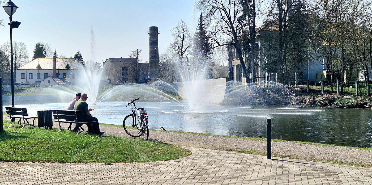 Vakar įjungtais Biržų miesto fontanais jau grožėjosi biržiečiai.