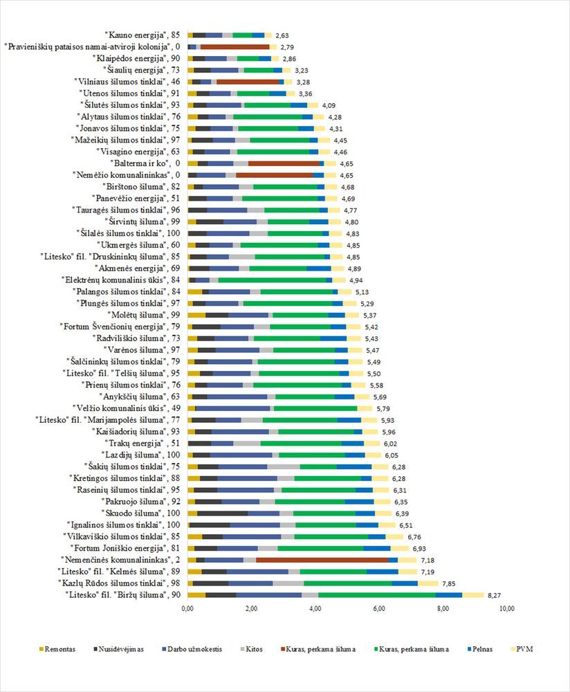 Sausio mėnesį brangiausiai už šilumą mokėjo biržiečiai – 9.09 cento, pigiausiai – Utenos gyventojai – 4.12 cento už kWh. Vasario mėnesį situacija buvo tokia pati (Biržuose – 9.06 cento, Utenoje – 4.02 cento).