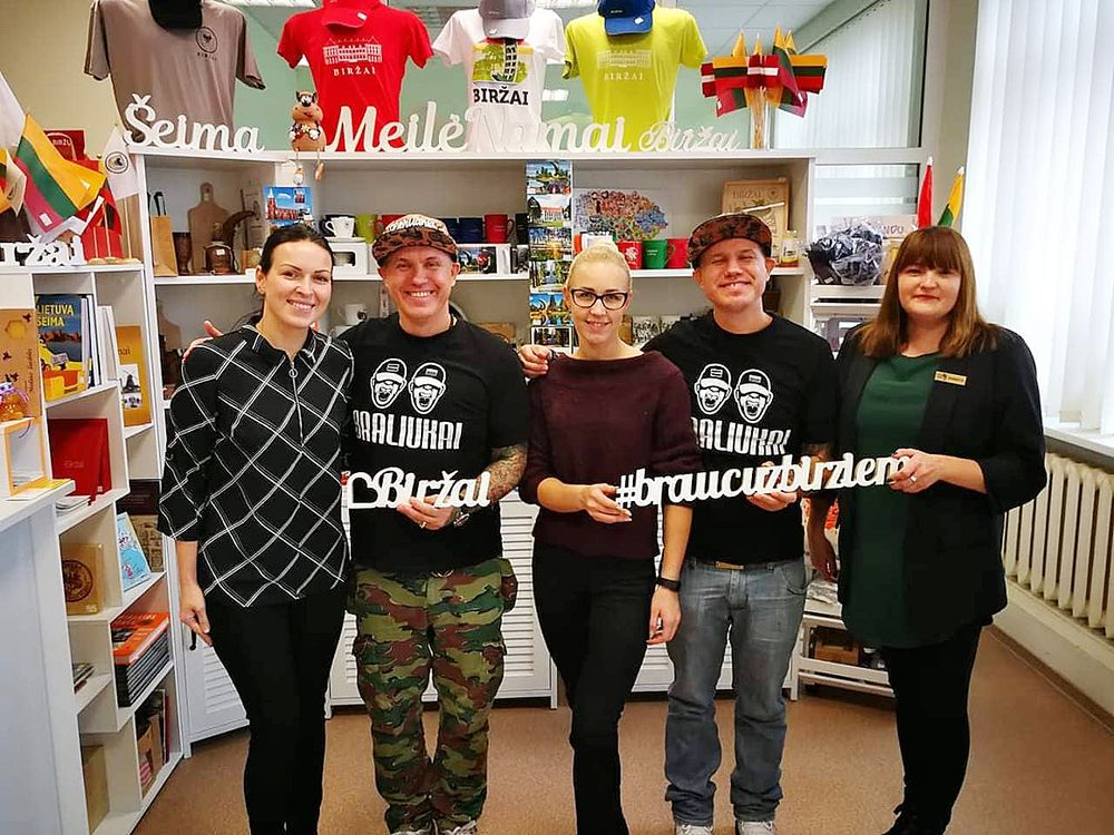 Tu­riz­mo in­for­ma­ci­jos cent­ro dar­buo­to­jos su sve­čiais – dvy­niais iš Lat­vi­jos Nor­mun­du ir Nau­riu Ma­ciais.