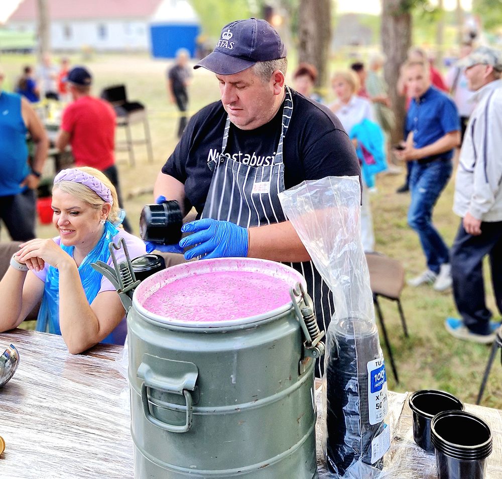 Sigitas Juodžionis pasiruošė du didžiausius puodus šaltibarščių, kurie po varžybų kaip mat išdžiūvo, nes galėjo vaišintis visi, kas tik norėjo.