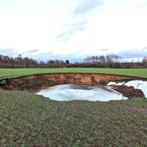 Pasak specialisto, rudens pabaigoje Biržų rajone lankėsi Lietuvos geologijos tarnybos Inžinerinės geologijos skyriaus (LGTIGS) specialistai, buvo vykdomas monitoringas, tačiau grupė geologų, žvalgydami vietoves, šios rekordininkės nepastebėjo. „Spalio ir lapkričio mėnesiais, šios smegduobės nebuvo, spėjama, kad ji galėjo atsiverti gruodį“, – „Biržiečių žodžiui“ sakė Š. Kubilius.