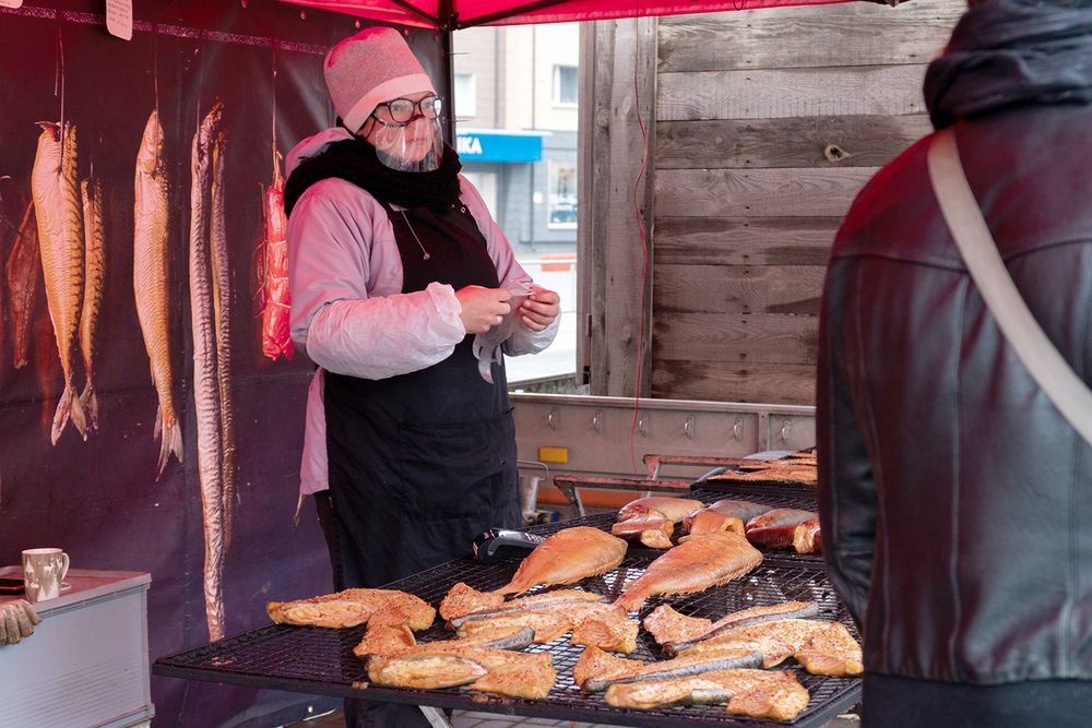 Turbūt ne vieną biržietį viliojo tvyrantis rūkomos žuvies kvapas. Prekeivė Renata su vyru atvyko net iš Palangos, Kunigiškių ir atsivežė ne tik žuvų, bet ir rūkyklą. „Tam, kad būtų šviežia“,- sakė moteris. Žuvies pasirinkimas platus: karpiai, karšiai, upėtakiai, šamai, unguriai ir kapitonai – nors ir ne visiems girdėta, bet pasak Renatos, labai skani žuvis. Prekeivė pasakojo, kad kai šalyje tokia padėtis, išgyventi smulkiajam verslui sunku. Todėl ir nusprendė prisijungti prie kitų prekeivių, kurie keliauja po visą Lietuvą.