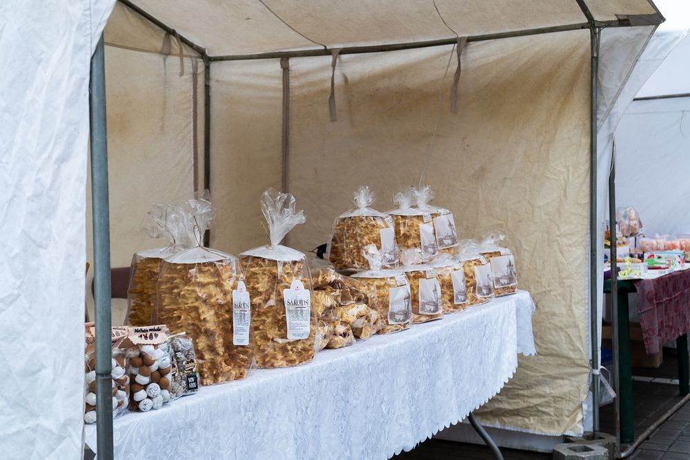 Nebuvo palapinės, prie kurios nestoviniuotų pirkėjai. Turgų subūręs organizatorius kuklinosi, sakė, kad čia nereikia specialaus organizavimo, tiesiog visi sutarė ir prisidėjo prie idėjos suburti amatininkų turgelį. Vardo nenorėjęs sakyti kaunietis prekiavo konditerijos gaminiais, o daugiausia pardavė paties gamintų, rankų darbo šakočių. Spygliuoto skanumyno paragavome ir mes – labai skanus, jaučiasi, kad naminis.