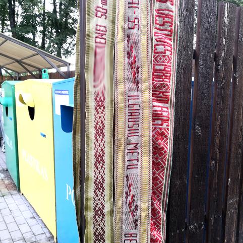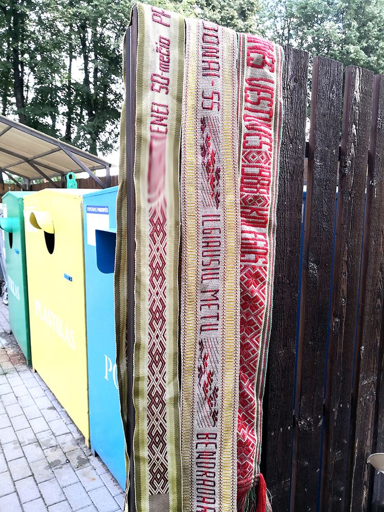 “Vakar ėjau pro konteinerius, esančius Gimnazijos gatvėje. Akį patraukė išmestos rinktinės vardinės juostos. Paskui sutikau pažįstamą mokytoją, kuri man pasakė, kieno jos buvo. Pati nesu biržietė, tai pagal užrašytą pavardę negalėjau jos pažinti. Pasak sutiktos mokytojos, juostas tikriausiai audė biržietė audėja. Abiejų iškilių Biržų asmenybių – mokytojos, kuriai kažkada buvo dovanotos juostos, ir audėjos, kuri jas audė, jau nebėra... O man taip keista ir liūdna, kad mes nemokame vertinti savo krašto istorijos. Juk mokytojų ne tiek ir daug, o audėjų tuo labiau. Gaila, kad jų palikimas mėtosi prie konteinerių...“,- „Biržiečių žodžiui“ rašė moteris, prisistačiusi Olgos vardu. Ji atsiuntė ir nuotraukas, kurios matosi, kaip Biržų miesto Gimnazijos gatvėje esantys atliekų konteineriai apkarstyti minėtomis juostomis. Kažkas jas tiesiog išmetė, nes pasirodė nebereikalingos. Užrašai ant juostų išduoda, kad jos buvo austos ir dovanotos vienai rajono vakarinės mokyklos mokytojai ir skirtingomis – vestuvių, 50-ojo ir 55-ojo jubiliejaus progomis. Visur pasirašė sveikinantys kolegos.