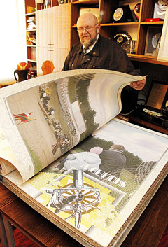MILŽINĖ: Praėjusių metų pabaigoje milžiniška knyga „Aukuras Salduvei“ buvo pristatyta Šiauliuose, o nuo ketvirtadienio ją galima pamatyti Knygų mugėje, vykstančioje Vilniuje. Knygos “Aukuras Salduvei“ idėjos autorius - Vilius Puronas.