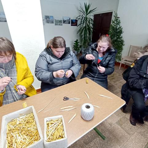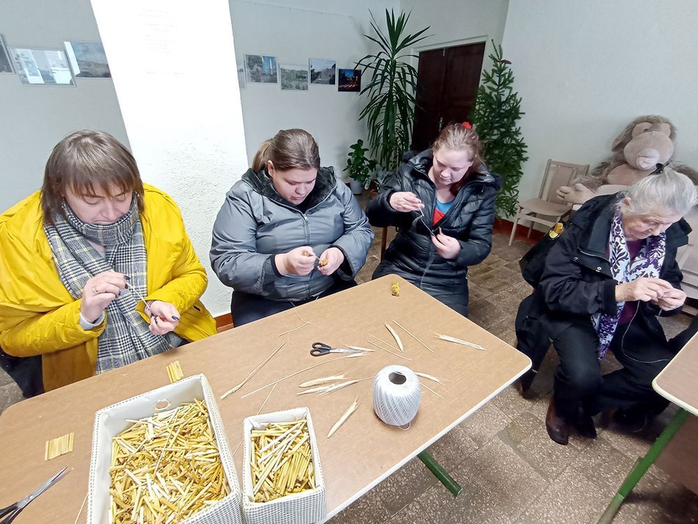 Ketvirtadienio pavakarę vabalninkiečiai būrėsi į biblioteką. Čia, padedami tradicinių amatų meistrės Zitos Kumpelienės, rišo šiaudinius žaisliukus. „Vieną pasidaryk sau, o kitą padovanok bibliotekai“,- skelbė renginio organizatorės-bibliotekininkės.