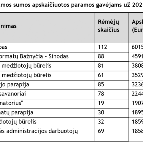 Remiantis inspekcijos pateikta TOP 10 didžiausios paramos sumos, apskaičiuotos paramos gavėjams už 2022 metus, Biržų rajone lentele, daugiausia paramos, t.y. kiek daugiau nei 6 tūkst. eurų, bus pervesta Būginių medžiotojų klubui. Šią sumą skyrė daugiau nei 100 mokesčių mokėtojų.