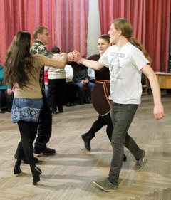Šiaulių kultūros centro salėje skamba liaudiška muzika. Pulkas susirinkusiųjų šoka, trypia, net grindys kilnojasi. Vieni čia apsilankė pirmąkart. Kiti nepraleidžia nė vienos vakaronės. Liaudiški šokiai Šiauliuose organizuojami jau trejus metus.