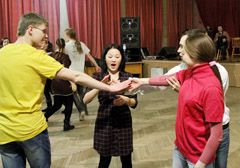 PAŽINIMAS: Studentams iš Kazachstano naujovė buvo ne tik liaudiški šokiai, bet ir paprasčiausias polkos žingsnis.