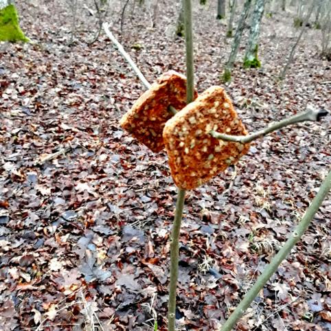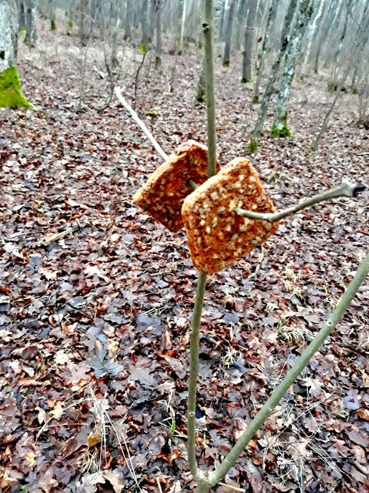 Ka­bi­no­me šias gė­ry­bes ant krū­mų, me­džių ša­kų, bė­rė­me ant šie­no, net dar­žo­vių ki­li­mą kir­do­nie­čiai su­klo­jo... Miš­ko poil­sia­vie­tė­je mus su­ti­ko gi­ri­nin­kas Au­re­li­jus Še­pe­tis su ko­le­ga, už­kū­rė lau­žą su­šil­ti ir pra­ve­dė pa­žin­ti­nę miš­ko pa­mo­ką, do­va­no­jo kny­ge­lių. Žai­dėm, dai­na­vom, dek­la­ma­vom, vai­ši­no­mės "zui­kio py­ra­gu", kai ku­rie dar vy­ko­me keis­tuo­lės lie­pos pa­žiū­rė­ti. Bu­vo sma­gu vi­siems pa­bū­ti gam­tos prie­globs­ty­je. Ti­ki­mės: mū­sų do­va­nos žvė­re­liams ir paukš­čiams pa­tiks.
