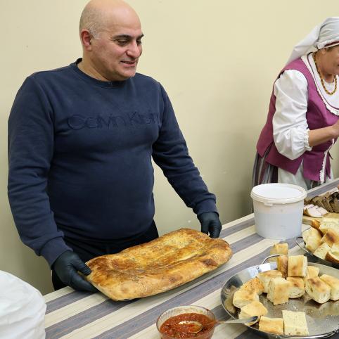Neapsieita ir be vaišių. Armėniškos duonos – matnakashos (pagamintos pagal senovinį receptą) ir armėniškos adžikos paragauti kvietė armėnų tautinės mažumos atstovas, gyvenantis Rokiškyje Arkadis Mkhitaryanas. Ragautojai buvo sužavėti ir vienu, ir kitu patiekalu.