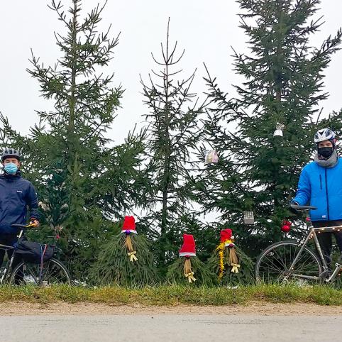 Evaldas su Svajūnu prieš Kalėdas sumanė įgyvendinti paskutinį šiais metais iššūkį – apvažiuoti dviračiais Biržų rajoną. Vaikinai pasirinko maršrutą Biržai-Germaniškis-N. Radviliškis-Meiliūnai-Biržai. Kalėdiškai pasipuošė ir dviračius: Evaldas ant bagažinės pritvirtino kalėdinę eglutę, Svajūnas savąjį apraizgė lemputėmis ir išrūko. Šimto kilometrų kelionė dviratininkams užtruko 6 valandas.