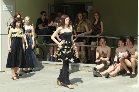 STILIUS: Floristės demonstravo drabužius, puoštus gėlių kompozicijomis.