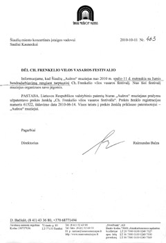 RAŠTAS: Festivalio rengėja Šiaulių miesto koncertinė įstaiga apie naujoves buvo informuota raštu.