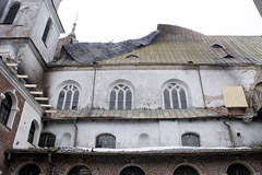 STOGAS: Tytuvėnų bažnyčios stogas įgriuvo ketvirtadienį. Per mėnesį judėjo tik popieriai, bet ne buvo gelbėjama bažnyčia.