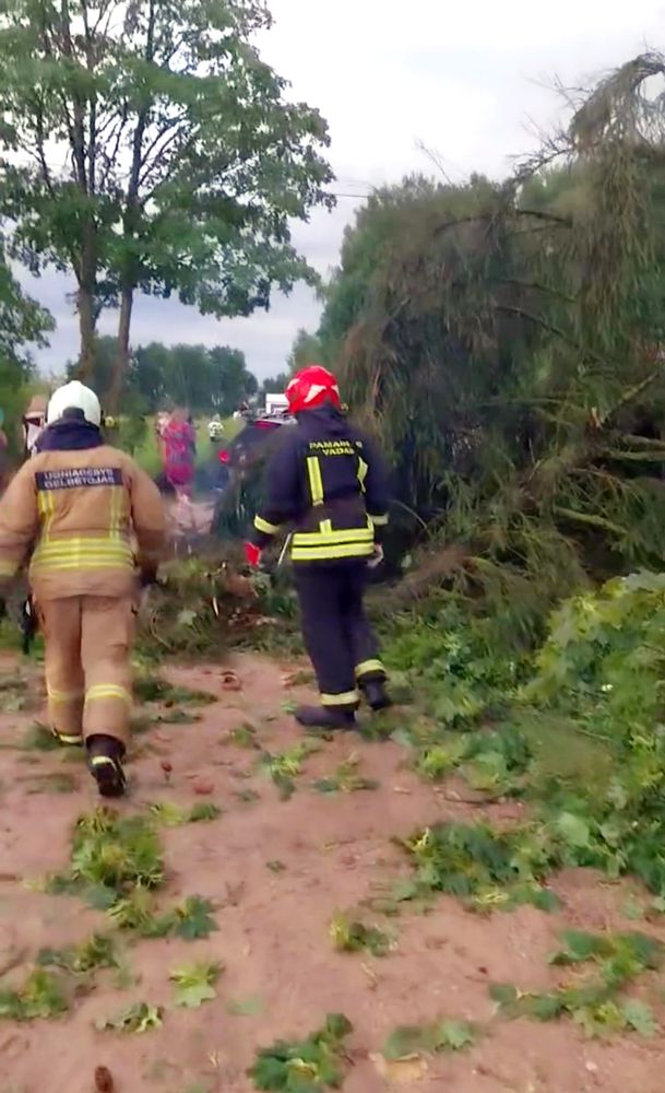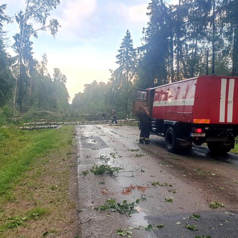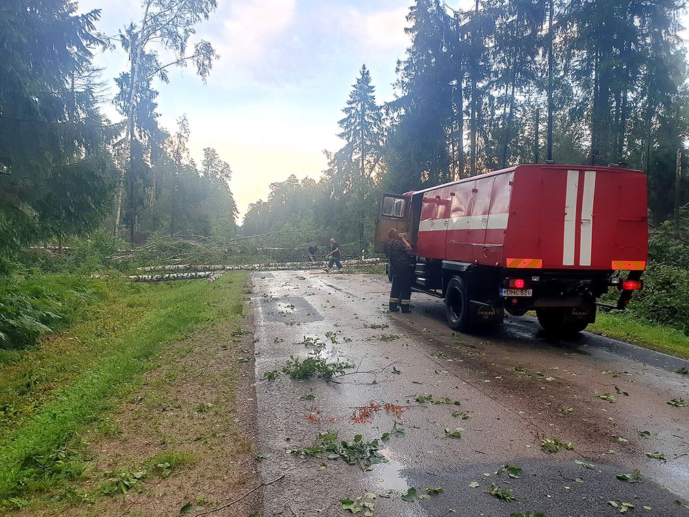 Šalinti nuvirtusių medžių skubėjo net 6 ugniagesių automobiliai iš skirtingų rajonų. Du ugniagesių automobiliai skubėjo į pagalbą, kai 19 valandą vakaro gavo pranešimą trumpuoju pagalbos numeriu 112, kad kelyje Vabalninkas – Paliūniškis ant važiuojančio automobilio užvirto medis. Automobilyje, ant kurio, kaip paaiškėjo, užvirto didžiulė eglė, buvo du keleiviai, tačiau įvykio metu jie nenukentėjo. Gelbėjimo darbus atliko Vabalninko ir Kratiškių ugniagesių komandos.
