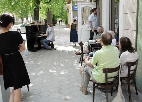 Akordeonu praeiviams savo kavinėje-ledainėje grojo italas Alfonso Poccia. Šiauliuose jis gyvena penkerius metus.